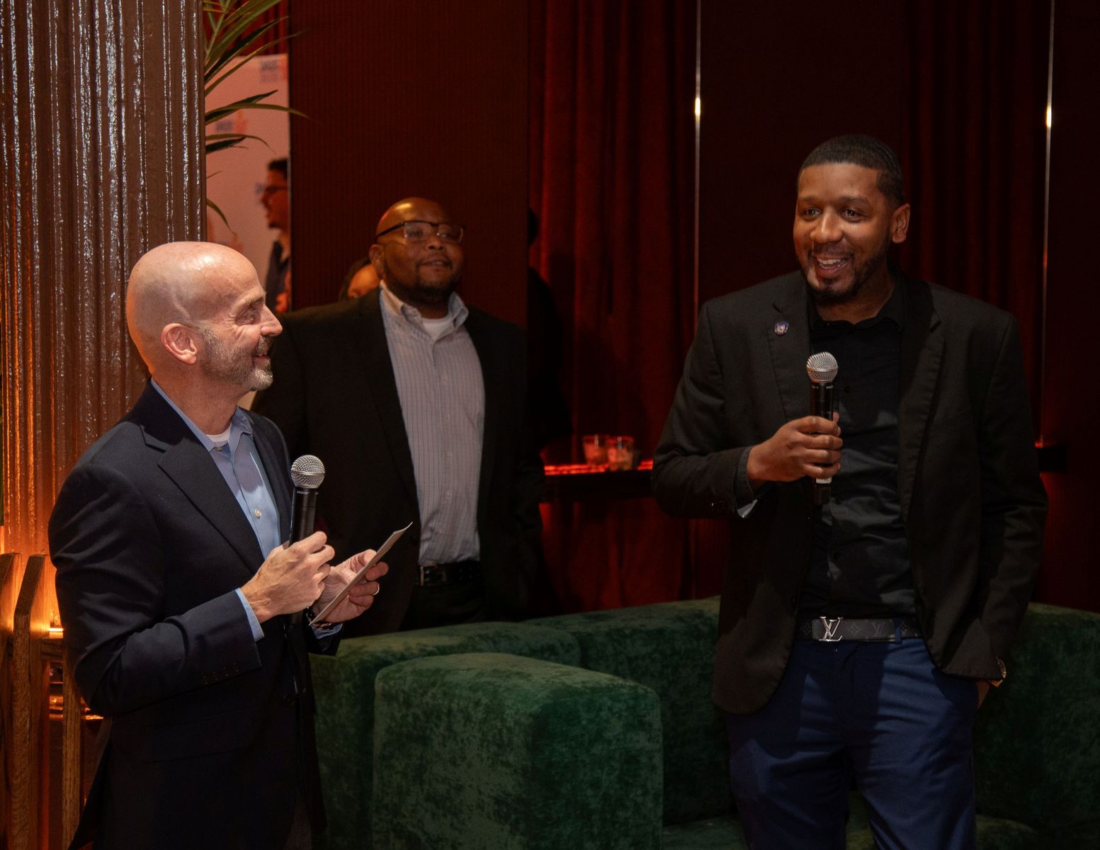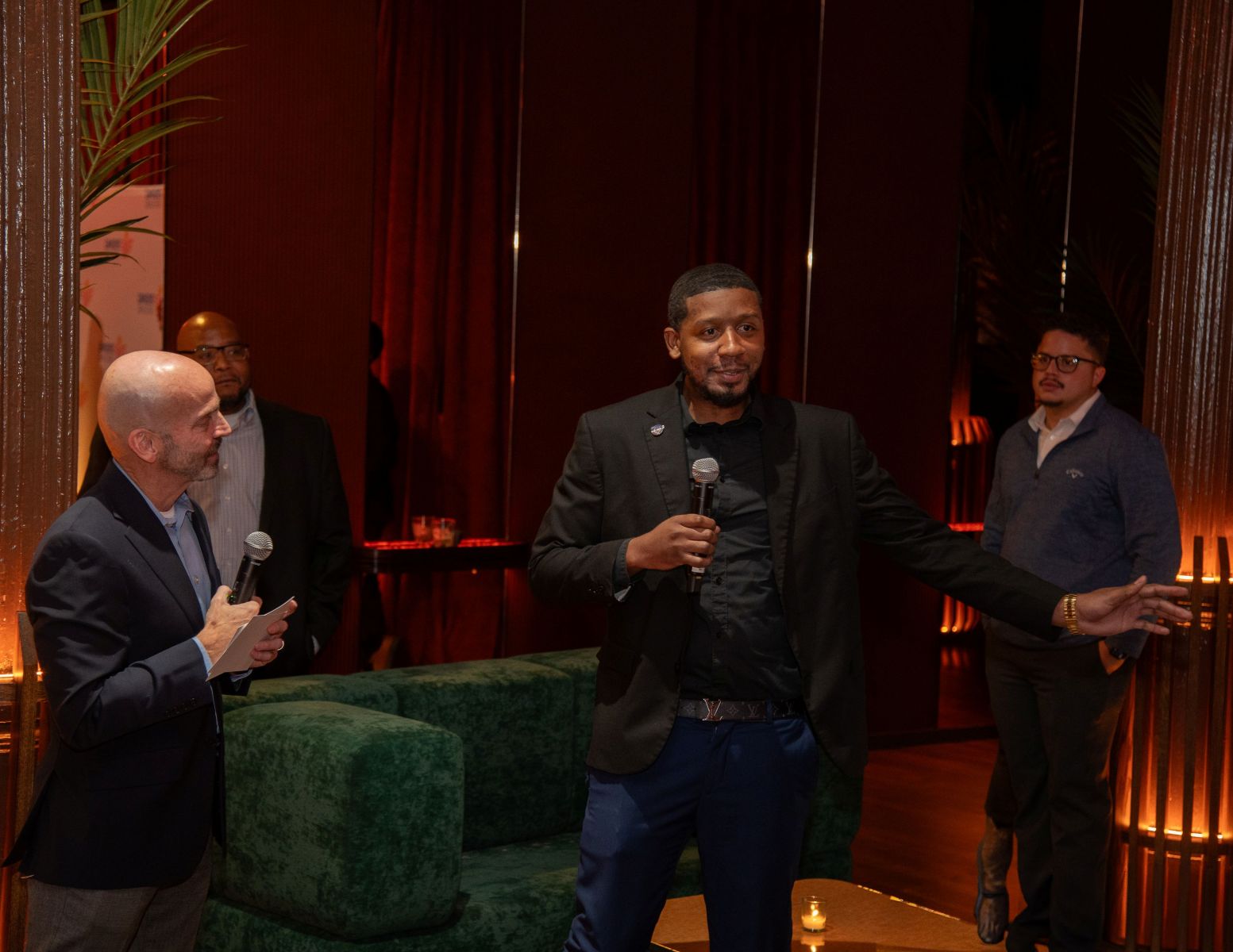 Our Fall Benefit cocktail reception at the Amber Room in Manhattan was full of warm hearts, community, and a shared passion for our mission-driven work. Guests heard from Shatek who spoke to Rising Ground CEO, Alan Mucatel, about the impact Rising Ground’s Fatherhood Initiative has had on his life. Shatek, who calls his 11-year-old son “my everything,” described how the Fatherhood Initiative gave him back his voice when he felt it had been taken away from him: “It’s one of the best things that has ever happened to me and my son.”
